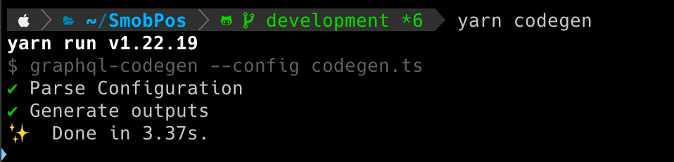 1. GraphQL Codegen 명령어 실행: 명령어 실행으로 해당 쿼리에 맞는 타입이 자동으로 생성됩니다.